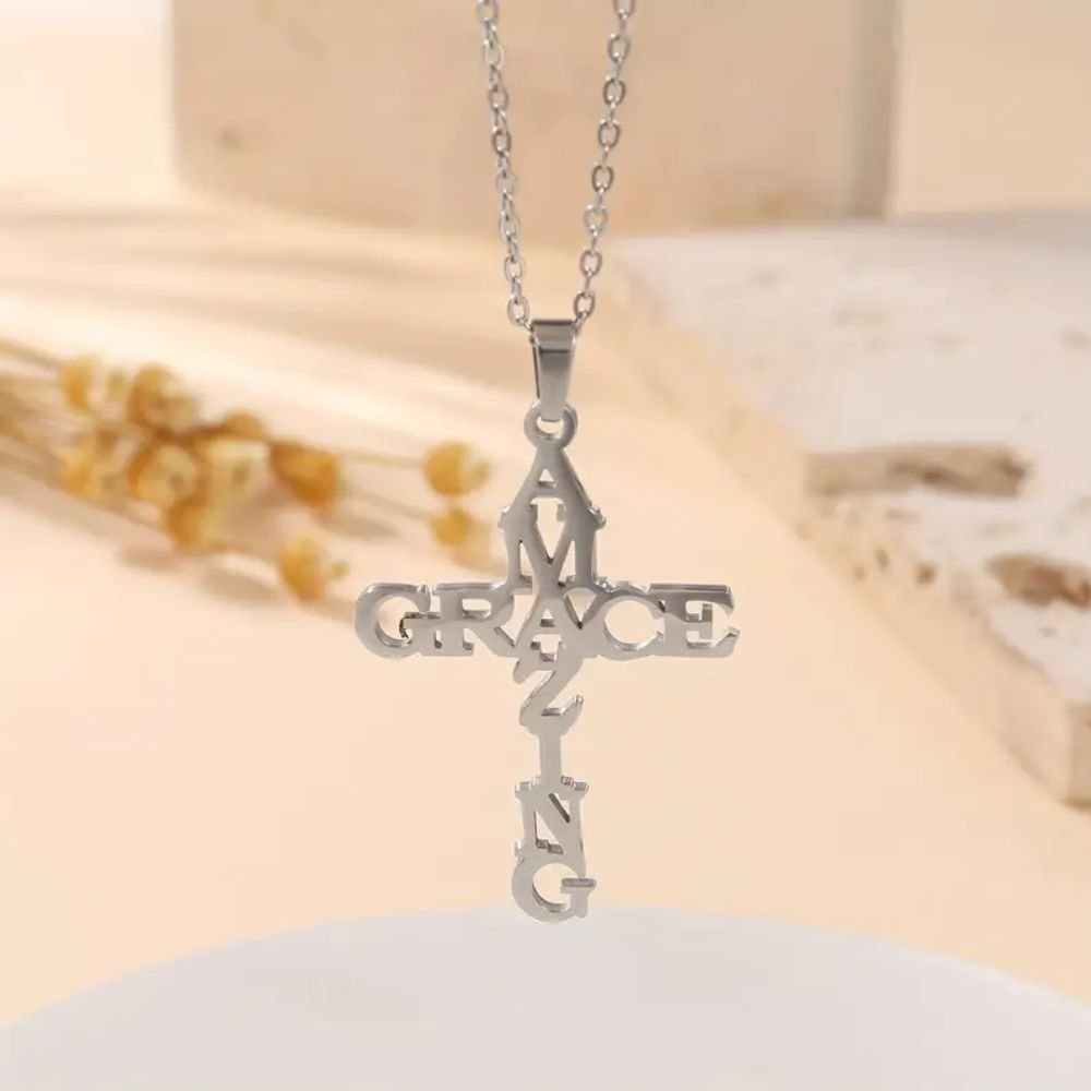 With God’s love and amazing grace we have been saved and set free from the all the power of sin. May this necklace serve as a reminder of God’s Amazing Grace for you or the person you love. A stunning cross made with the word Amazing Grace, perfect for any person of faith!