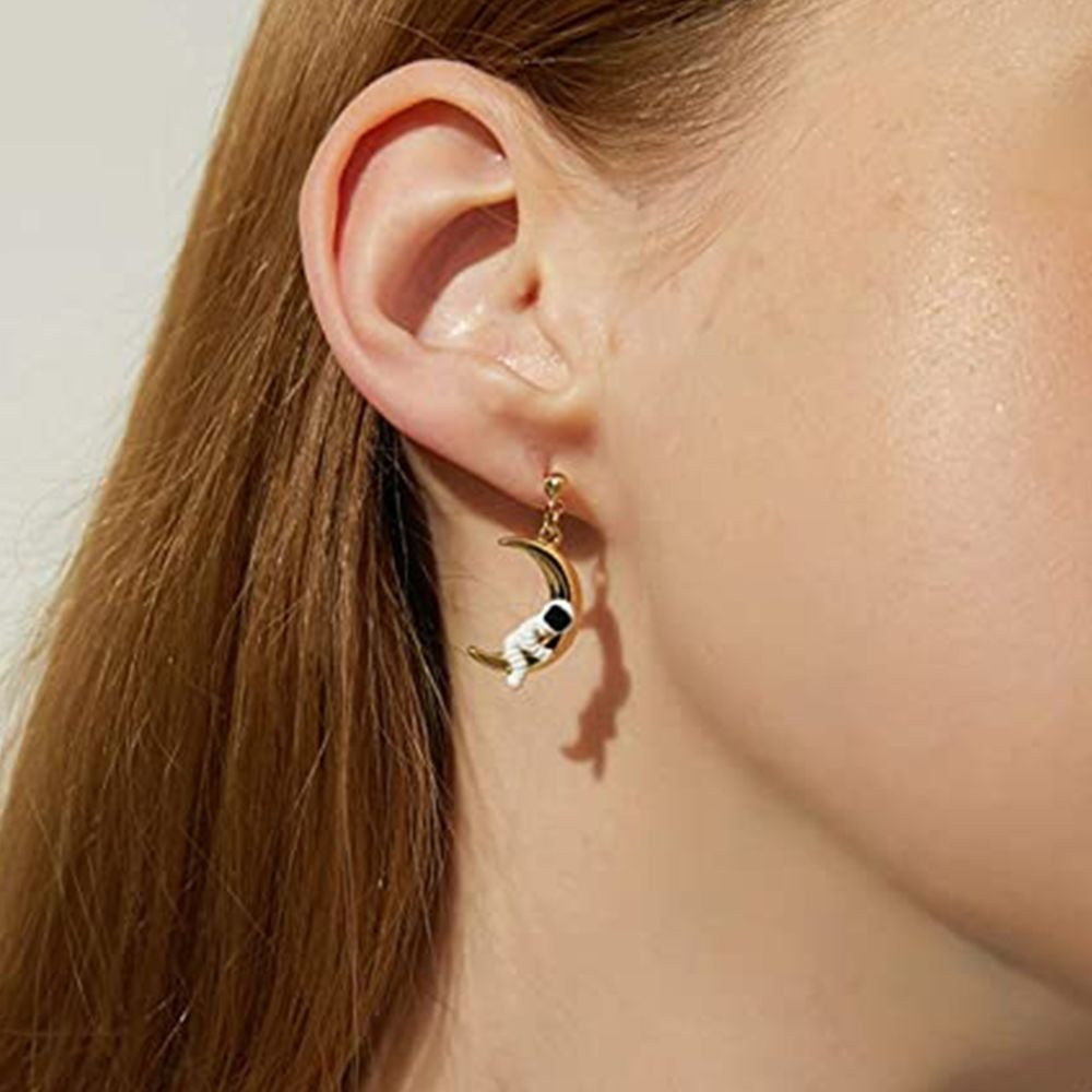 Add some style to your everyday life with these gorgeous earrings. The Astronaut and Planet earrings are a great piece to add to your collection, with a perfect mix of both space and star themed elements. The design elevates your style to the universe with orbitals, stars and planets.