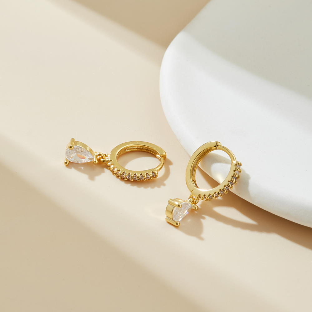Elevate your special day with the Bridal Diamond Earrings, a stunning blend of elegance and simplicity. These beautiful pave huggie hoop dangle earrings sparkle with delicate diamond drops, perfect for adding a touch of sophistication to your bridal look.