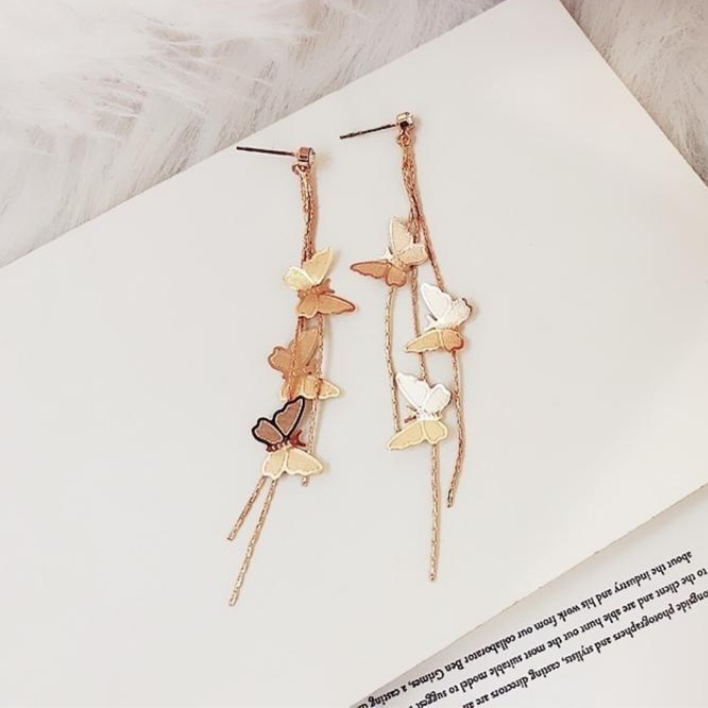 These versatile earrings effortlessly elevate any outfit, making a statement wherever you go. The intricate butterfly design and delicate tassel pendant exude grace and charm, capturing attention with their unique and eye-catching appeal. Embrace your inner beauty and express your individuality with these must-have earrings that perfectly blend fashion and sophistication.