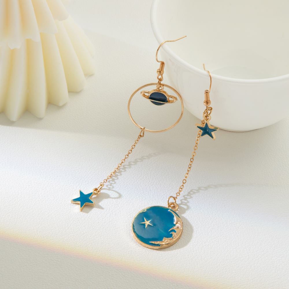 Perfect for dreamers and stargazers, they offer a graceful and enchanting way to elevate any outfit. Treat yourself or someone special to these mesmerizing earrings and let the beauty of the universe inspire your style.