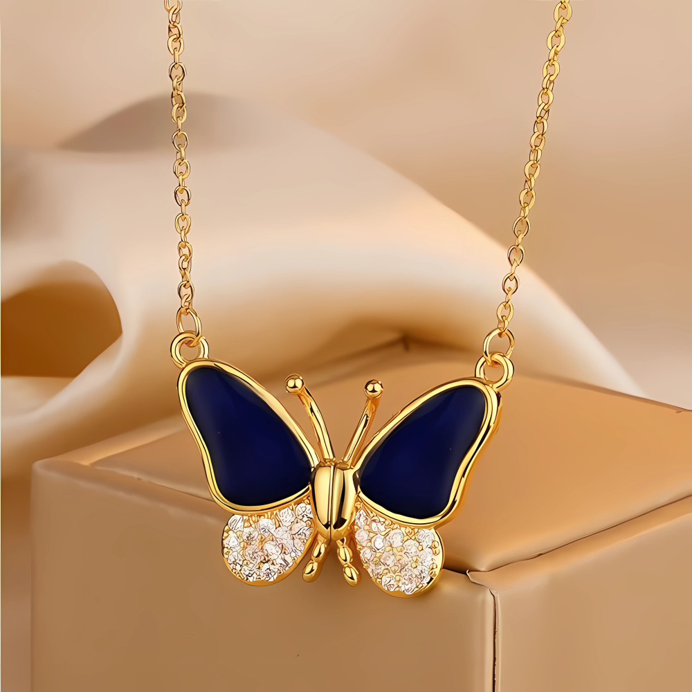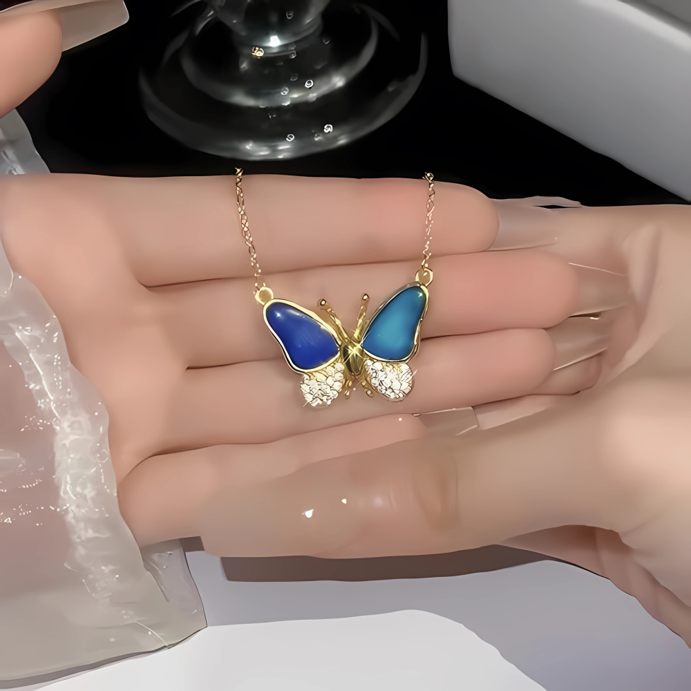 The Color Changing Butterfly Necklace is a captivating accessory that blends sophistication with a magical twist. The butterfly pendant on this necklace changes colors when exposed to higher room temperatures, reflecting both light and the environment, ensuring each moment stands out as unique.