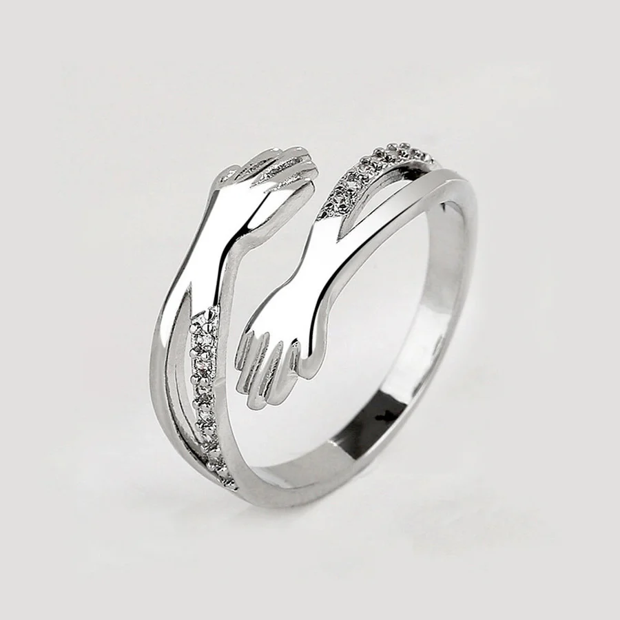 A: The Diamond Studded Hug Ring is made from high quality silver and gold plated copper with zircon.
