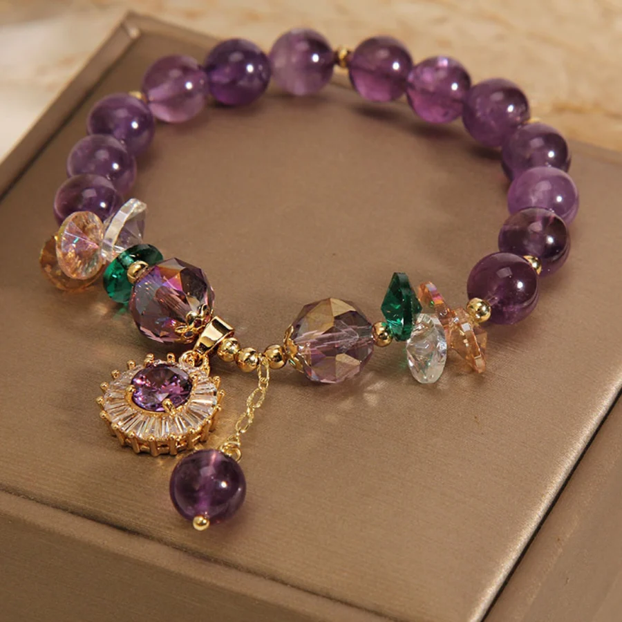 A:Â The Healing Amethyst Bracelet is made with high-quality crystals and cubic zirconia stones and highly-durable copper and elastic rope.