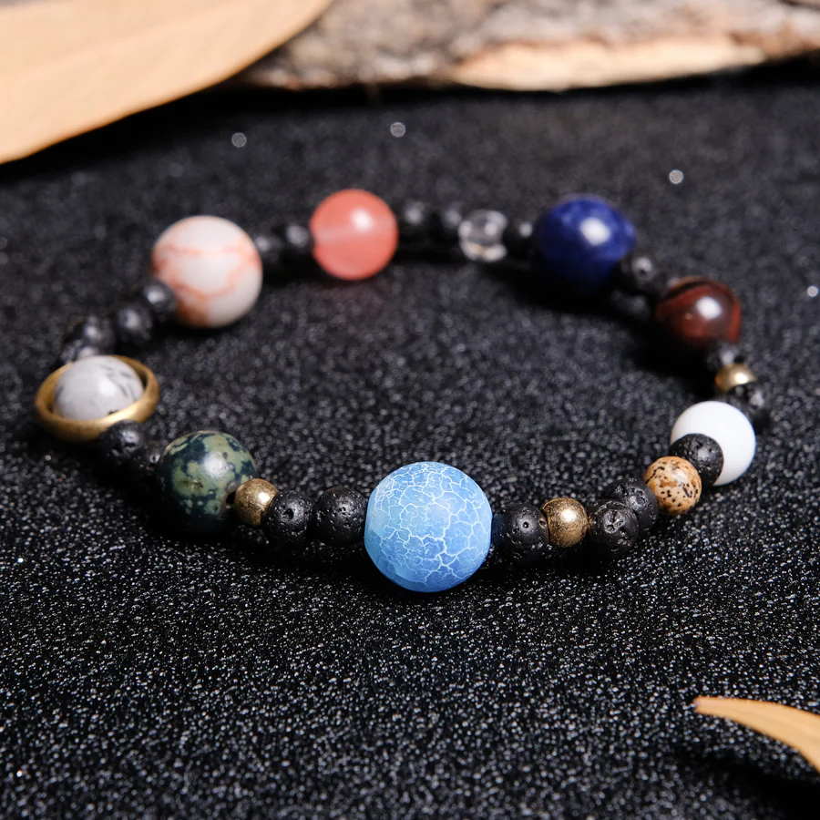This Solar System bracelet celebrates the 9 planets of our solar system, featuring the planets Venus, Earth, Mercury, Neptune, Uranus, Pluto, Jupiter, Saturn, Mars, and Moon that travel around it. When you put the bracelet on your wrist, you become the the center of the solar system and the brightest sun!