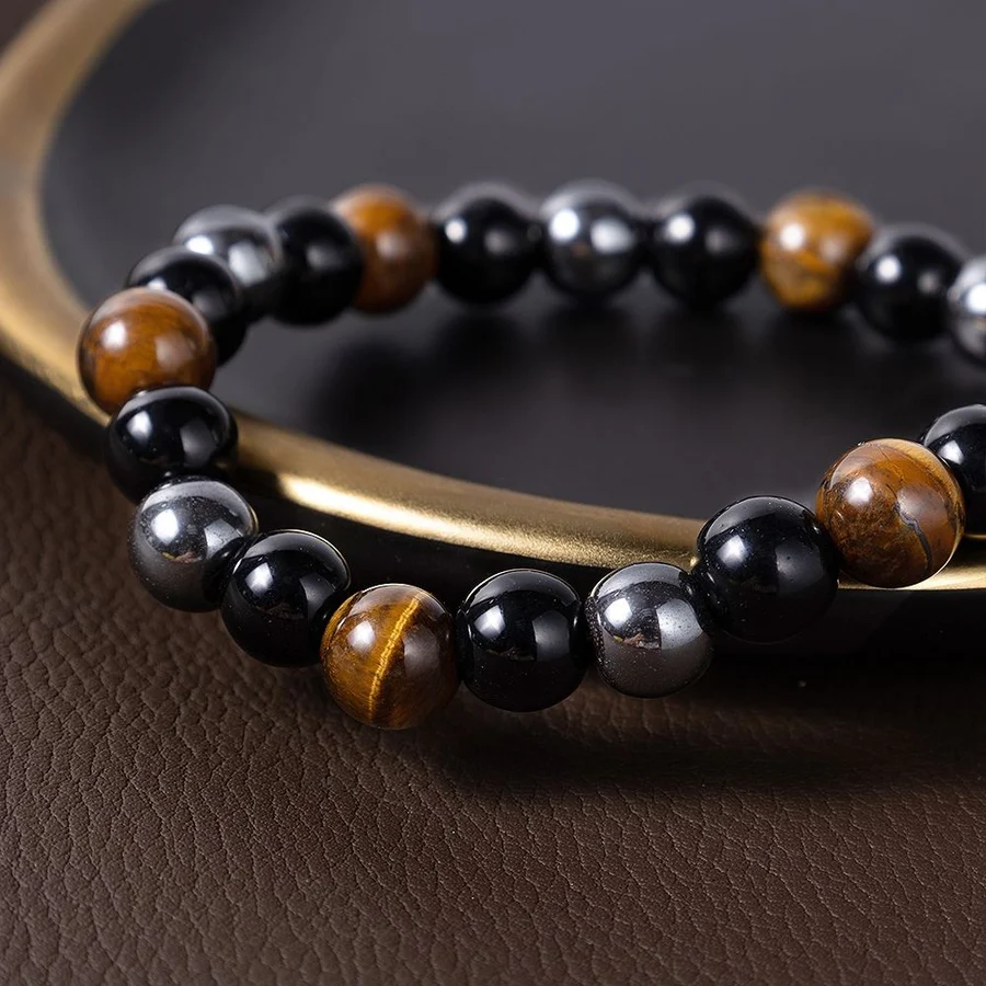 Combine the strength of the Obsidian, Tiger Eye and Hematite stone to the negative energy away! Safeguard your emotional, spiritual and physical health with this Triple Protection Stone Bracelet.